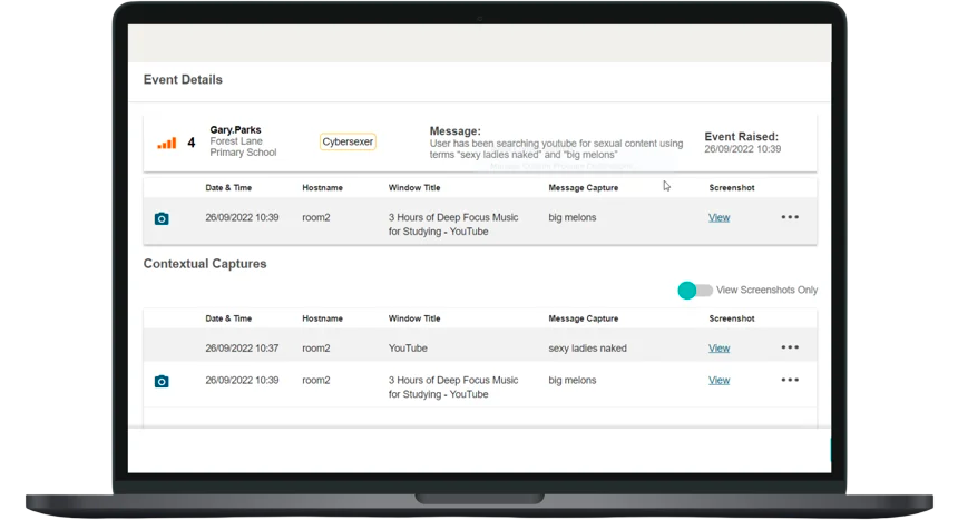 Highly trained, human moderation team provides protection 24/7, 365 days a year. They assess the more serious alerts acting as the eyes and ears of school staff.